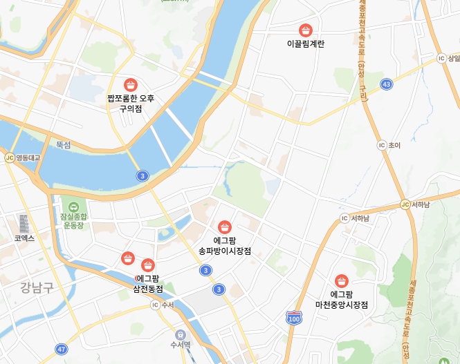 아래 네이버 지도를 이용하여 현재 송파구 주변 무인 계란 판매점 현황을 간략하게 소개합니다.
